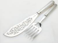 STERLING SILVER HANDLED LARGE FISH SERVERS MARTIN HALL SHEFFIELD VICTORIAN Item #100142