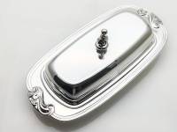 VINTAGE SILVER PLATED OBLONG BUTTER DISH WITH GLASS LINER Item #100143