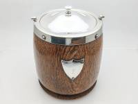 ANTIQUE SILVER PLATED & OAK BISCUIT BARREL Item #100145