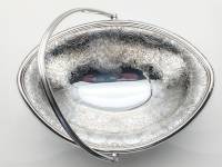 A good oval pedestalled small dish with swing handle and chased interior. Gleaming silver, no dents. Minor surface marks. GBP17.99