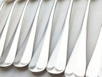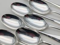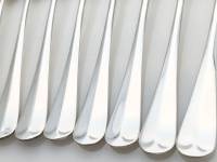 A good vintage set of 8 dessert spoons in Hanoverian with Rattail by Mappin & Webb. All hand polished & gleaming silver with fairly light use marks. Any dark patches in the photos are just reflections. GBP31.99