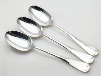 A good vintage trio of tablespoons in Hanoverian with Rattail by Mappin & Webb. Hand polished & gleaming silver with some use marks. Any dark patches in the photos are just reflections. GBP14.99